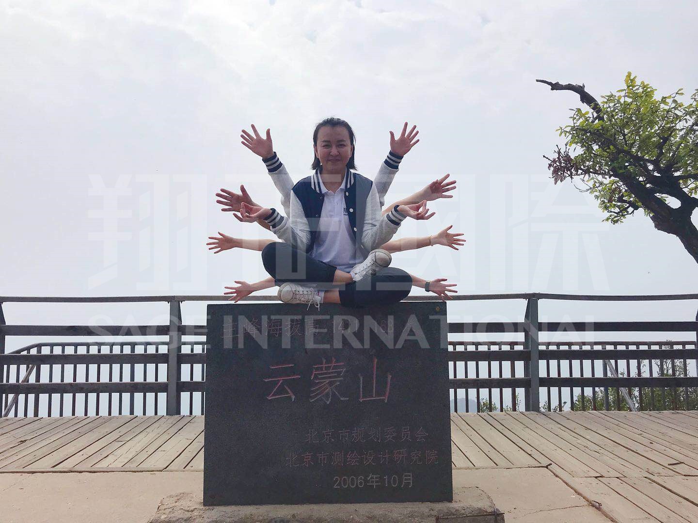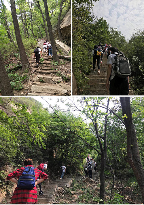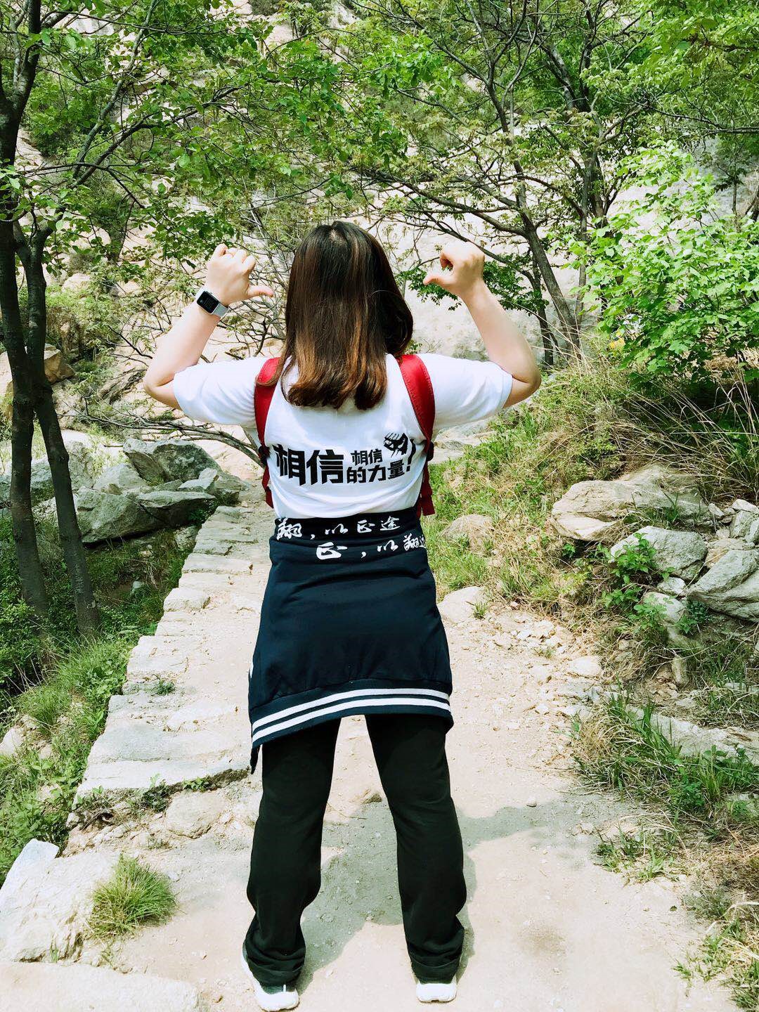 自出發(fā)前,我們已在心中簽下對自己的承諾:相信自己,竭盡全力,全體登頂!忘記有多少次的山間轉彎,已然忽略顫抖的雙腿和腳下偶爾松動(dòng)的石板階梯,T恤再這并不炎熱的時(shí)節一次次被打濕,我們,卻笑著(zhù)互相鼓勵:加油啊,咱們就要到達1411166(云蒙山主峰頂標注高度:1411.168米)了!經(jīng)過(guò)長(cháng)達4小時(shí)的“征戰”,我們終于見(jiàn)證了“相信的力量”,成功登頂!